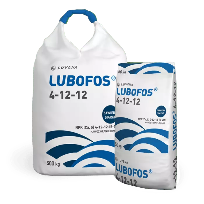 - Любофос 4-12-12 - універсальне гранульоване основне добриво, призначене для передпосівного застосування під усі озимі сільськогосподарські культури, а також для весняного підживлення ярих зернових і коренеплодів; може використовуватися для вирощування фруктів і овочів, на луках і пасовищах для покращення якості кормів.
